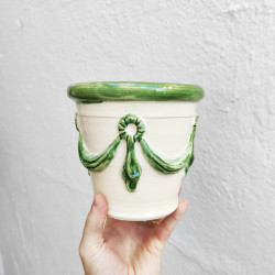 "Malagueña" style flowerpot with plate - 15 cm - Malaga, Andalusia (Spain) -