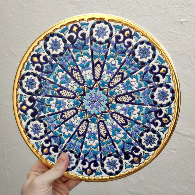 "Artecer" is the most prestigious of the manufacturers of these Seville ceramic plates. These plates are enamelled with 24-karat gold. It is known as the work of "dry rope", which was brought by the Arabs in the 8th century to Andalusia. Since then this craftsmanship has been carried out in Spain.