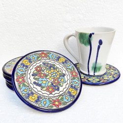 Set of six ceramic coasters - 14cm. (5.5") - "Cuerda seca" - Made in Seville, Andalusia -