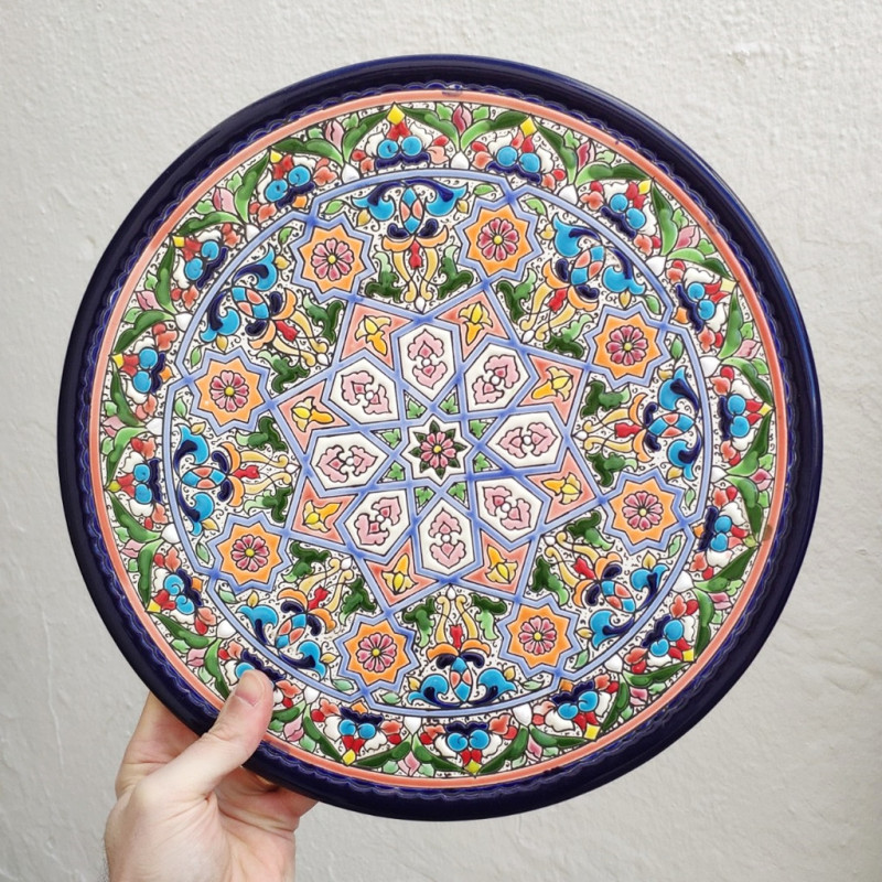 Ceramic plate in "Dry String" style - 32cm. (12.6in.) - Made in Seville (Spain) -