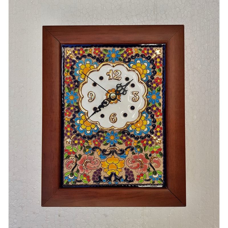 Ceramic clock with wooden frame 25 cm. x 20 cm. (10 in. x 8 in.)