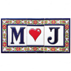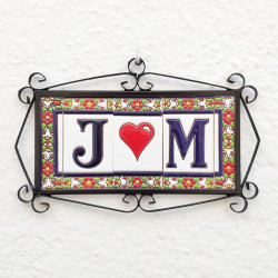 Signs with numbers and letters in polychrome ceramic tiles, hand-painted for making names, directions and signaling. Customizable text.