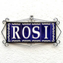 Signs with numbers and letters in polychrome ceramic tiles, hand-painted for making names, directions and signaling. Customizable text.